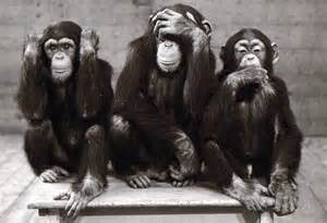 Je ne saurais dire pourquoi, mais mon esprit d’escalier a été pris instantanément d’une bien vilaine pensée : « singes de la sagesse », ou « politique de singes »  ?